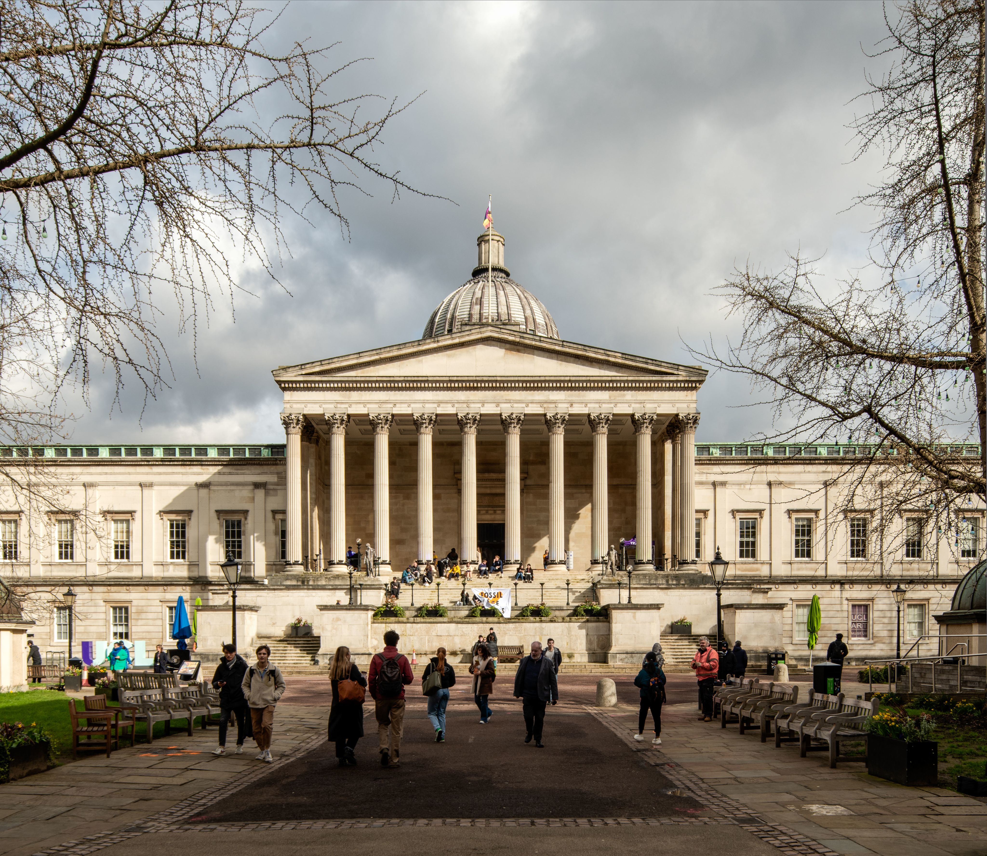 UCL’s Wilkins Building, west front in 2024. Built in 1827–9 to designs by the architect William Wilkins as the first stage of his masterplan for a grand quadrangle in Gower Street. © Photograph by Chris Redgrave